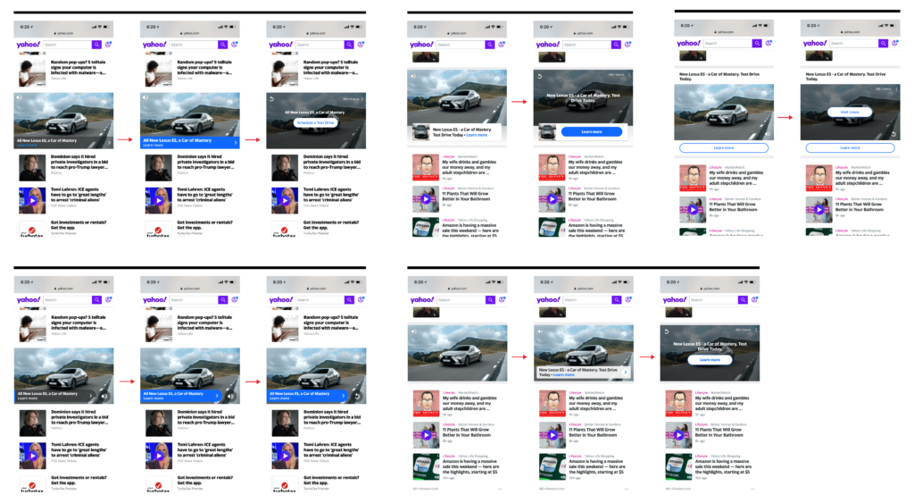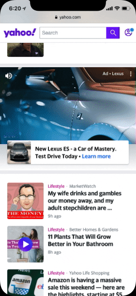 • We used the standard Yahoo ad label where users can find advertiser names and ad feedback options all together within a clear tap target.