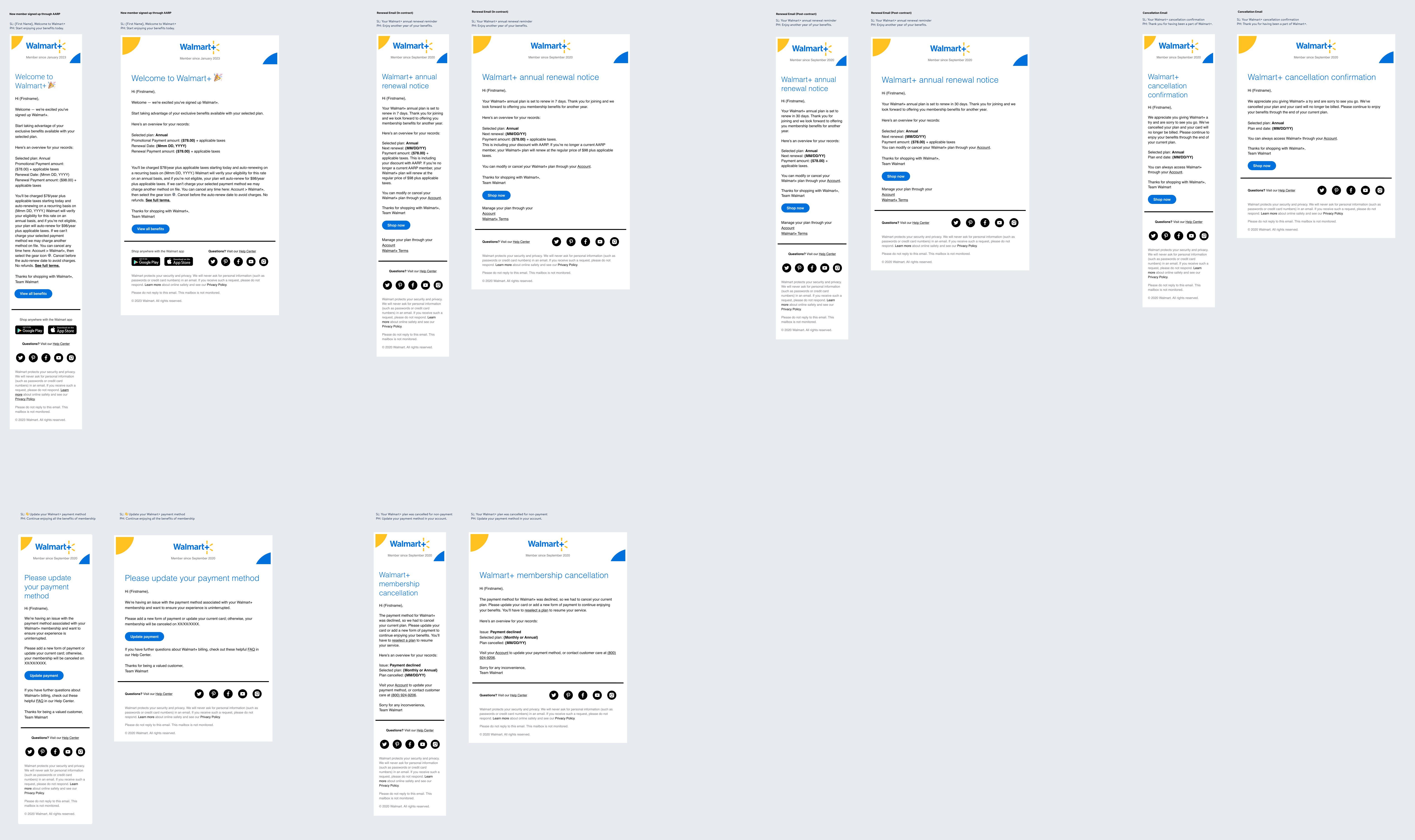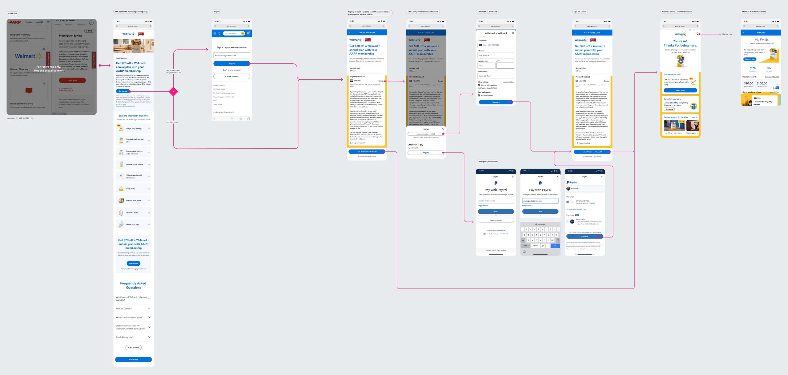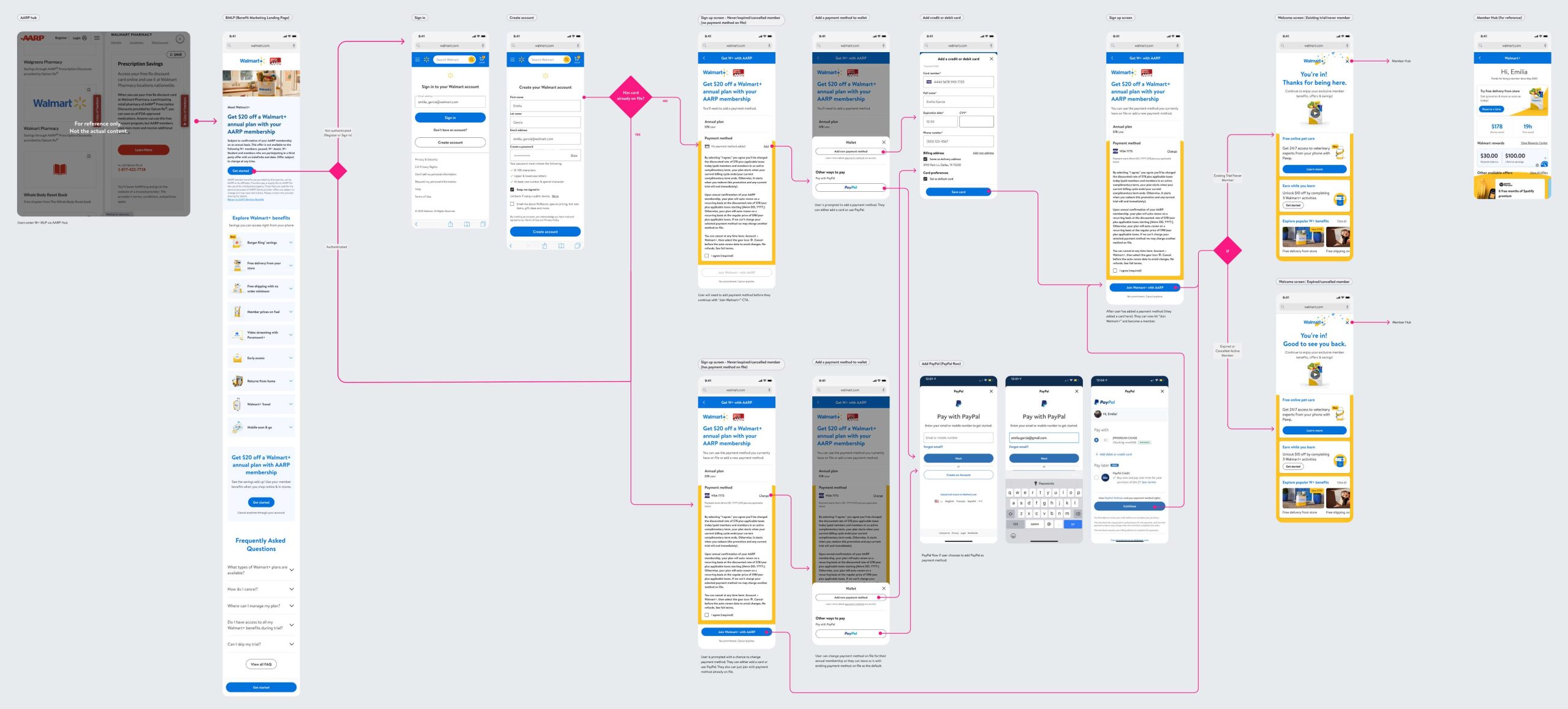 Members don't all arrive in the same state — some are new to Walmart+, some have lapsed, some are already paying monthly. Working with the research team, I mapped five distinct user scenarios to ensure every case was handled gracefully.